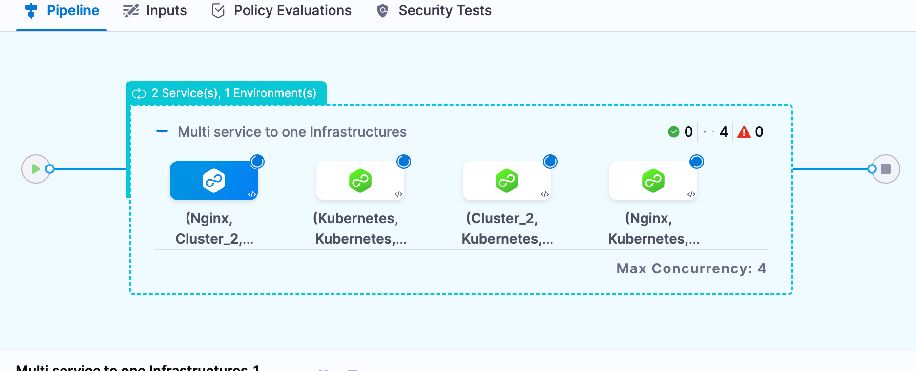 For example, let's say you host one infrastructure per customer and want to deploy your service to all customer infrastructures in the same pipeline. Instead of creating separate stages for each service and infrastructure combination, you can just deploy a single service to all infrastructures in the same stage.