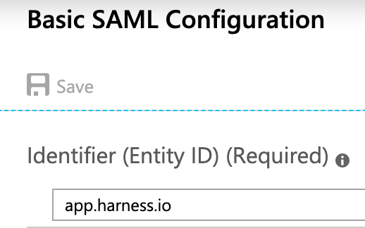 app.harness.io. The SAML application identifier is alwaysapp.harness.io. -