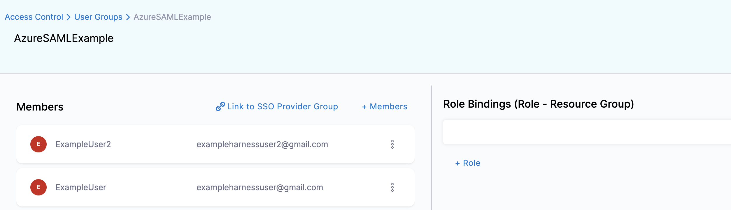 - In your Harness account in the other browser window, check the User Group you linked with your SAML provider. The user that logged in is now added to the User Group, receiving the authorization associated with that User Group.