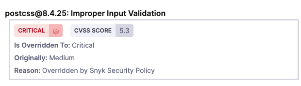 Show original issue severities overridden by Snyk security policies